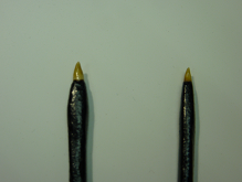 真鯛の過熱していない状態の牙に柄をつけて、細かい蒔絵部分の最後の磨きに使います。![]() |